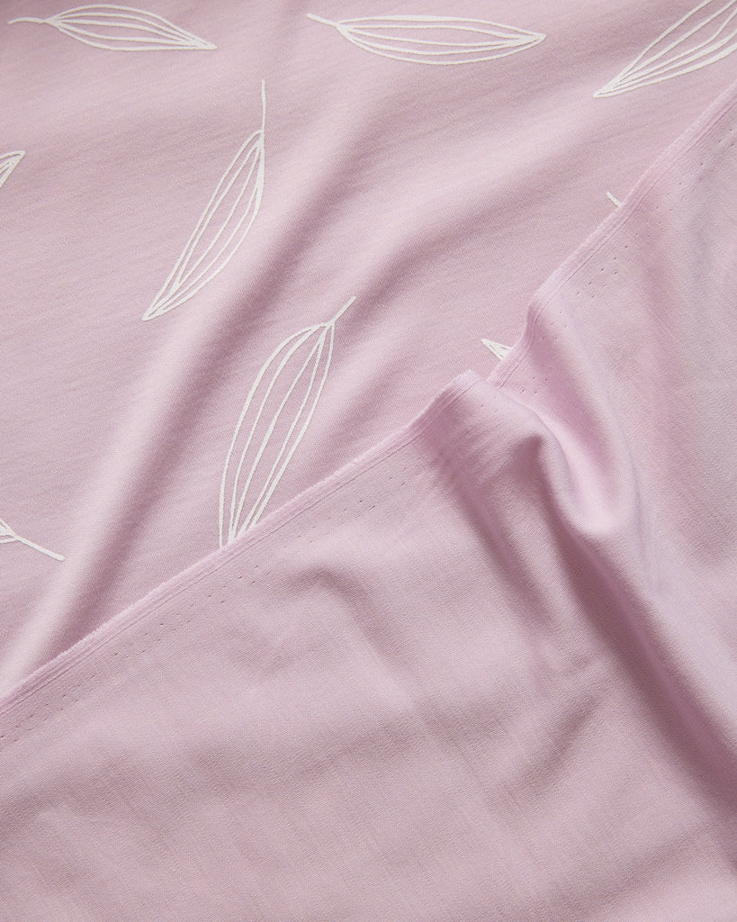 Merino Interlock Fabric per metre (280gsm) - LILAC WITH HAKEA PRINT